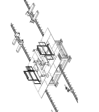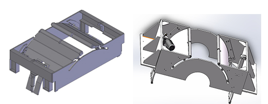 由電動推桿,關節軸承等件組成,可以方便的將車輛舉升并對中至轉鼓的高點,該機構共有四套,其結構如上圖。