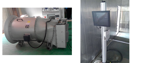 車輛迎面風機系統可模擬車輛在真實道路上受到的迎面風,并起冷卻作用。此風機可前后移動,動力電纜布置可調。