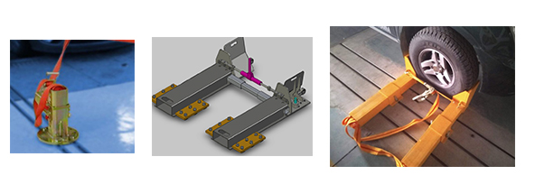 C)、車輛固定裝置采用立柱(高度可調)的結構形式,固定車輛的前端和后端,所有金屬部件需進行防銹處理,車輛固定裝置確保車輛準確牢靠固定,該裝置應
